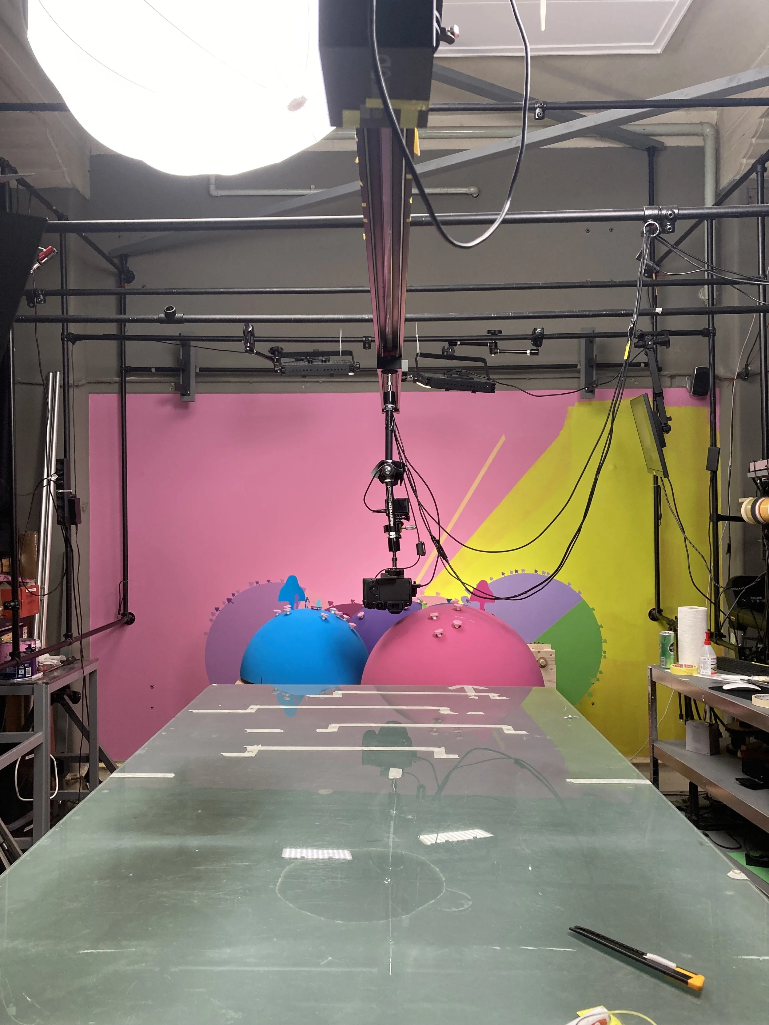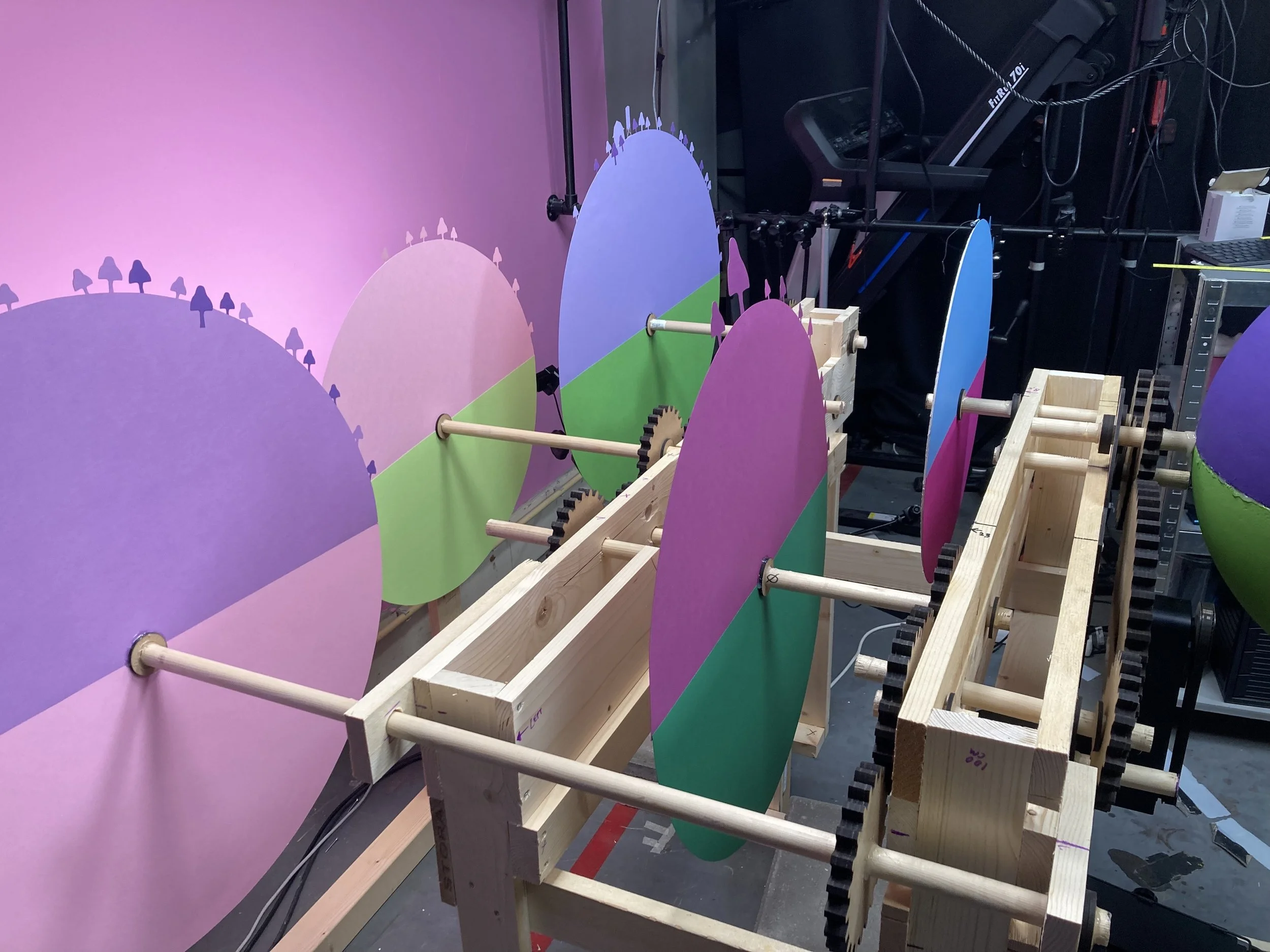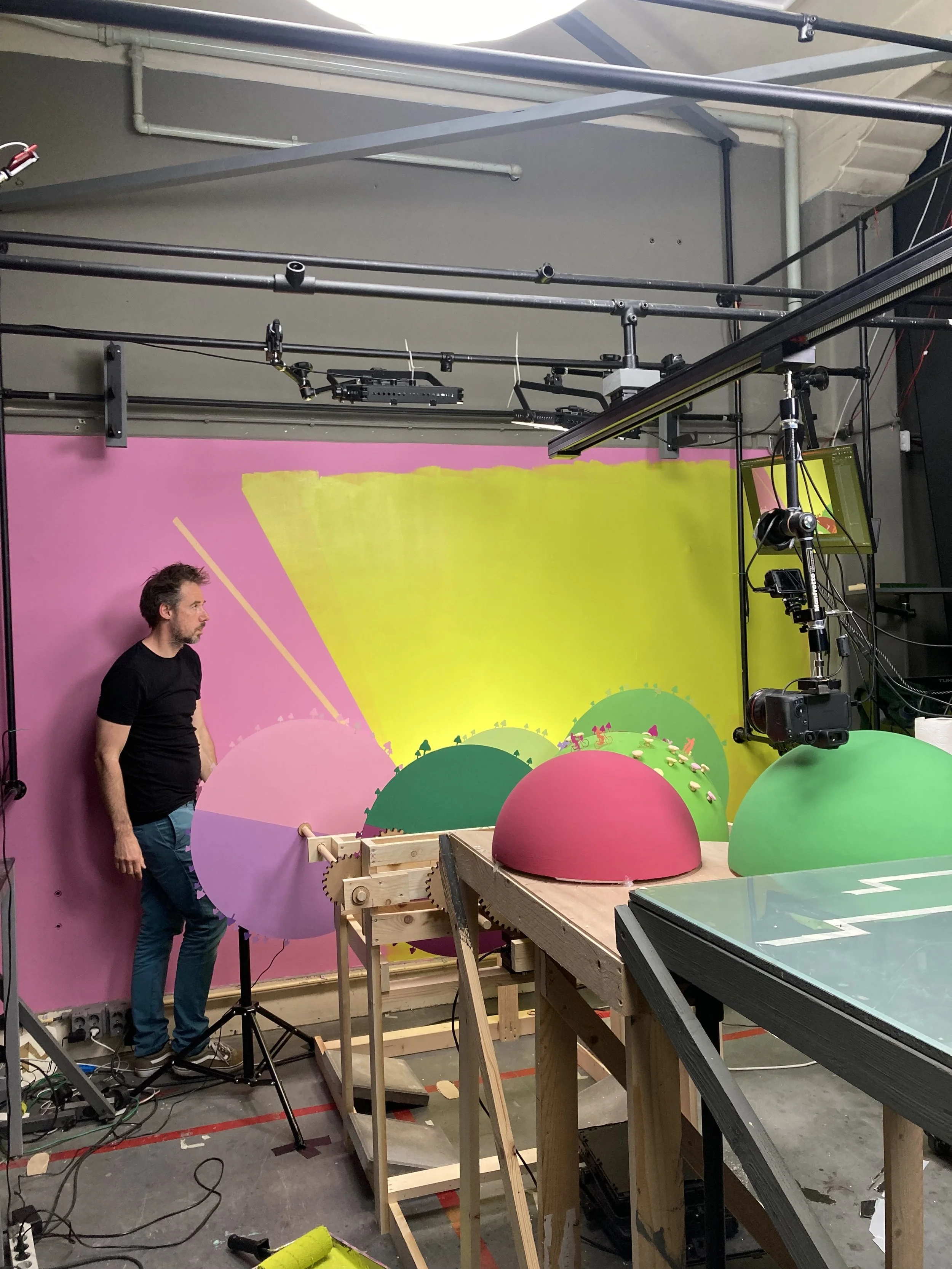 To do the flip in the middle of the film we built a construction with 22 cogwheels that connected all the hills to each other so we could rotate them frame by frame.