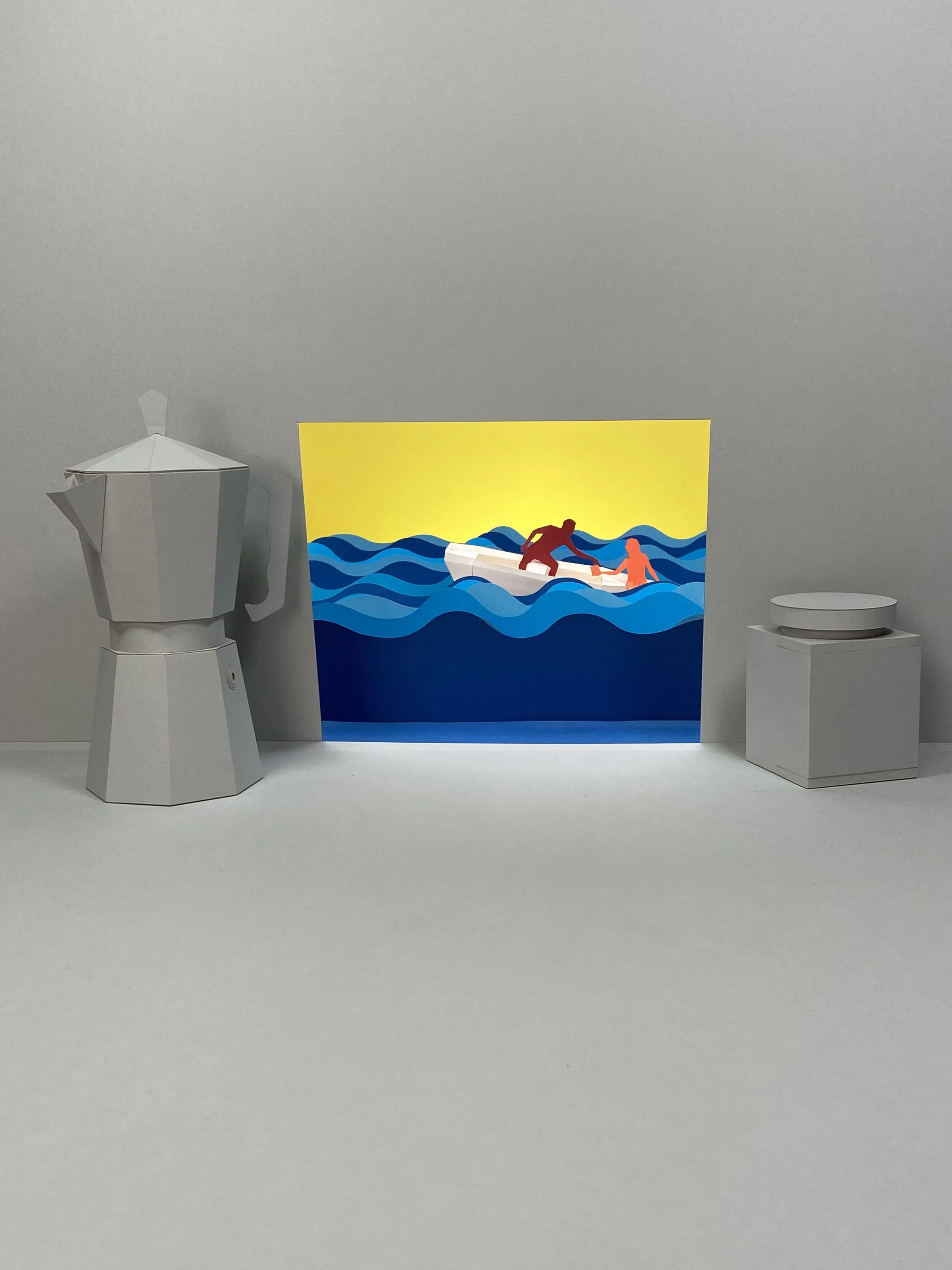 For the boat, we wanted to really create the swaying feeling you get on the water and not just a back and forth. By attaching it to a stick that we cut at an angle and then turning the base around we were able to get the right motion that felt authentic.